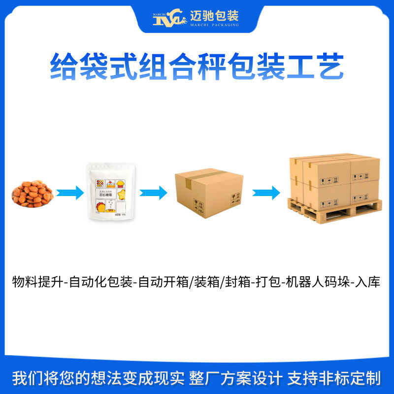 邁馳,是一家專業生產全自動給袋式組合秤包裝流水線的生產廠家,無揚塵、高精度,可根據物料不同特性定制包裝流水線設備,一對一定制化服務,26年包裝行業經驗助力生產企業將本增效,提高產能。